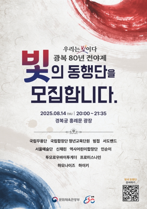 문화체육관광부는 광복 80년을 맞이해 8월 14일 저녁 8시, 경복궁 흥례문광장에서 국민과 함께하는 광복 80년 전야제 ‘우리는 빛이다’를 개최한다. 이번 전야제의 주제인 ‘우리는 빛이다’에는 지난 80년…