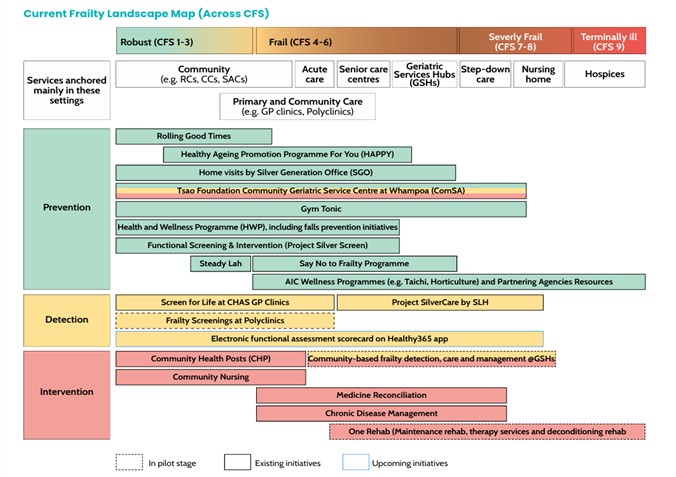 싱가포르의 노쇠 단계별 서비스 연계 현황(Frailty Landscape Map)