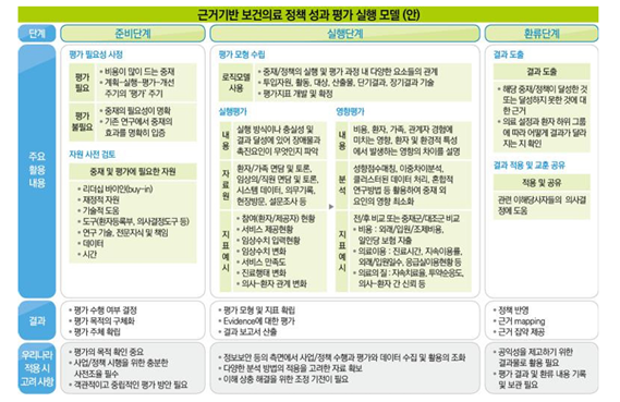 그림1. 근거기반 보건의료 정책성과 평가 실행모형(안)