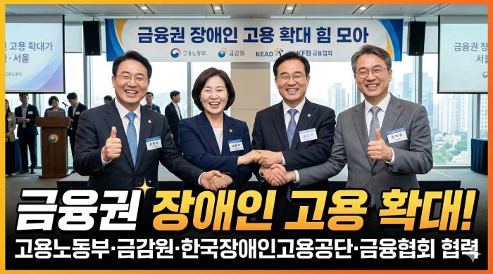 3월 6일 고용노동부, 금융감독원, 한국장애인고용공단과 금융협회(은행·금투·생보·손보)는 금융감독원 본원(서울 여의도)에서 ‘금융권 장애인 고용확대를 위한 업무협약’을 체결했다고 밝혔다.