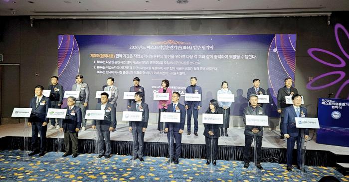 방송정보국제교육원(원장 김윤식) 외 14개 훈련 기관(기존 13개 기관, 신규 1개 기관)은 19일 서울 마포구 호텔 나루 서울 엠갤러리에서 열린 '2026년도 베스트직업훈련기관(BHA) 협약식'에 참석했다.